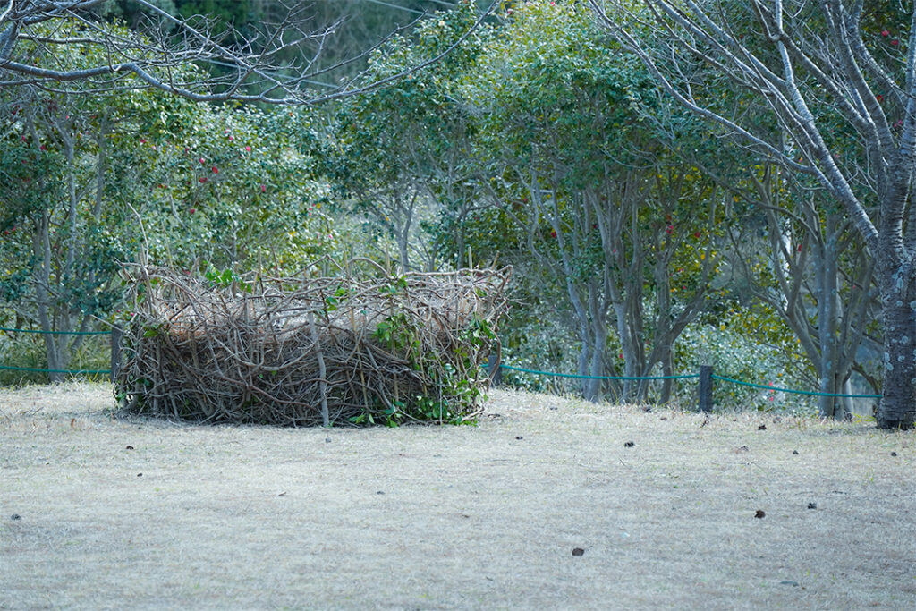 葉、枝、木などを積み重ねてつくった“生きもののすみか”「エコスタック」