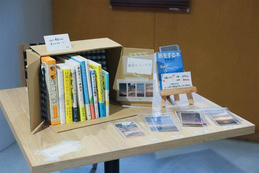 それぞれの店主さんのテーブルには、好きなジャンルやテーマで集められた本がずらり。本の装丁を活かした並べ方を工夫したり、手書きのポップを添えたりと、「自分だけの小さな本屋さんづくり」を存分に楽しんでいる様子が印象的でした。